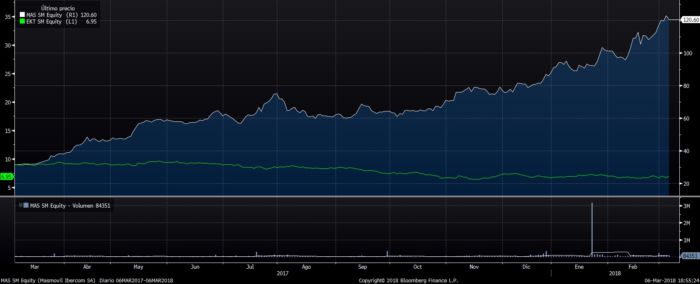 Másmóvil es una de las empresas con más éxito del mercado español. Su revalorización en Bolsa, que alcanza cotas de récord -empezó cerca de los 2 euros por acción y ya supera ampliamente los 110 euros-, le ha puesto en el punto de mira de muchos inversores. La presentación de resultados de 2017 volvió a catapultar al valor en Bolsa tras sus buenos números.