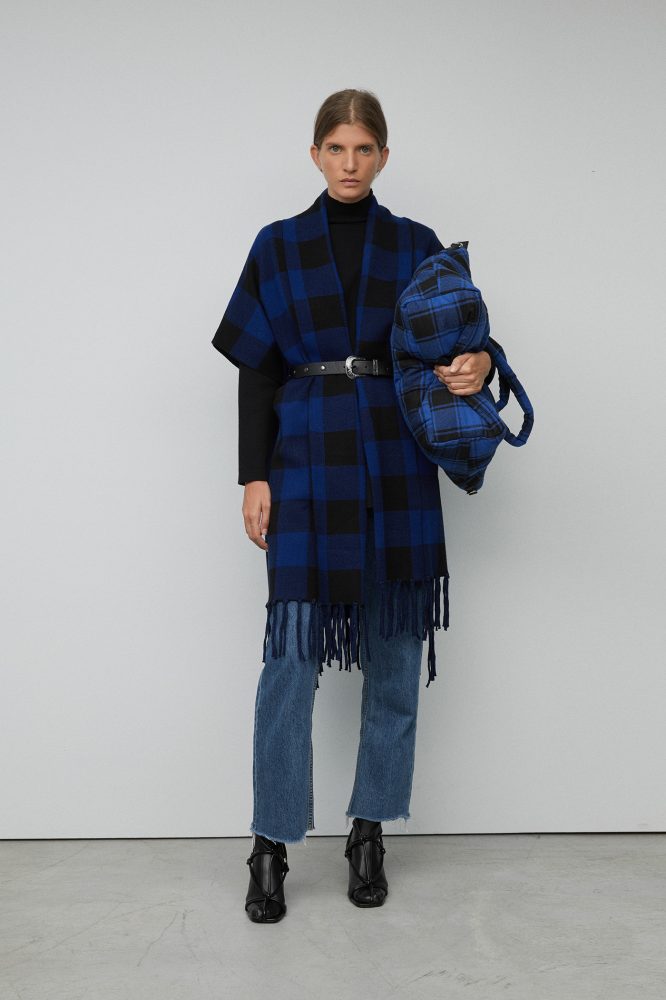 Y sí, la capa de cuadros multicolor de Sfera luce por si sola. Un modelo con estampado de cuadros y terminación con flecos que te hará lucir un outfit de campeonato.