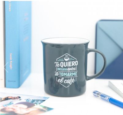 Si te encanta el café, nada mejor que decirle lo mucho que lo quieres con esta taza en que su mensaje ya lo dice todo. Te quiero incluso antes de tomarme el café. Dice muchísimas cosas con ello, pero sobre todo que lo quieres incluso por la mañana cuando te acabas de despertar, en cualquier momento y circunstancia.