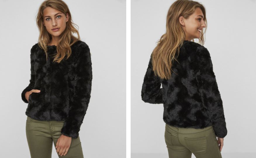 Sí, todos los modelos de abrigos que os hemos mostrado son de pelo… sintético. Ahora bien, el más sorprendente de todos lo hemos dejado para el final: ¿os gusta este abrigo de Vero Moda? Pues está diseñado con poliéster (sí, sintético), pero reciclado. El tacto exterior es muy suave, y en el interior resulta muy cálido. De entre todos los abrigos por menos de 50 euros que puedes comprar esta semana en el centro comercial, este sin lugar a dudas es el más ajustado. También en precio, ya que tiene un descuentazo del 30%. Solo está disponible en el negro de la imagen. Si aprieta el frío puedes subir el cuello alto.