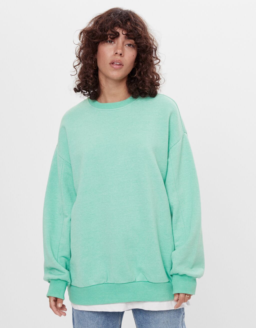 Los vaqueros Wide Leg que acabamos de ver también combinan a la perfección con una sudadera de diseño clásico y corte oversize, justo como esta que hemos incluido dentro de nuestra selección de prendas favoritas de Bershka para la nueva temporada. Confeccionada con un 50% de algodón orgánico y poliéster, se convertirá en un imprescindible en tu armario.