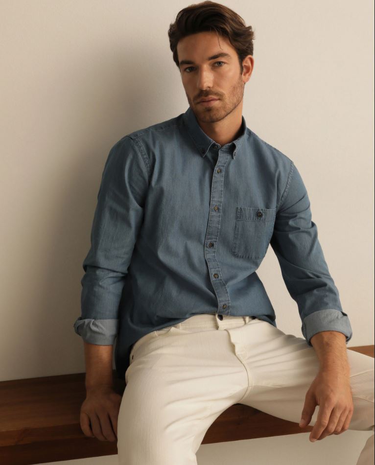 El primer producto de hombre de las rebajas de El Corte Inglés es esta camisa vaquera de hombre classic. Es una camisa lisa vaquera de color azul de tipo básico, colores a tono, cuello americano de botones, classic fit, 100% algodón y un bolsillo. Está disponible desde la talla 3 hasta la talla 5. Recuerda que hay una guía de tallas en el enlace.