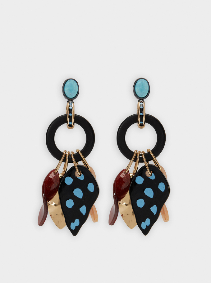 Son unos pendientes largos que combinan tonos oscuros con otros mucho más llamativos como el azul y el dorado. El resultado es un complemento único que puedes lucir en prácticamente cualquier ocasión y que te sirve igual si quieres un estilismo más formal que si has apostado por un estilo informal.