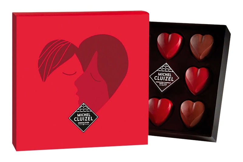 El Club del Gourmet de El Corte Inglés tiene esta caja de Michel Cluizel a muy buen precio. Con 8 bombones en forma de corazón y con colores negro y rojo.
