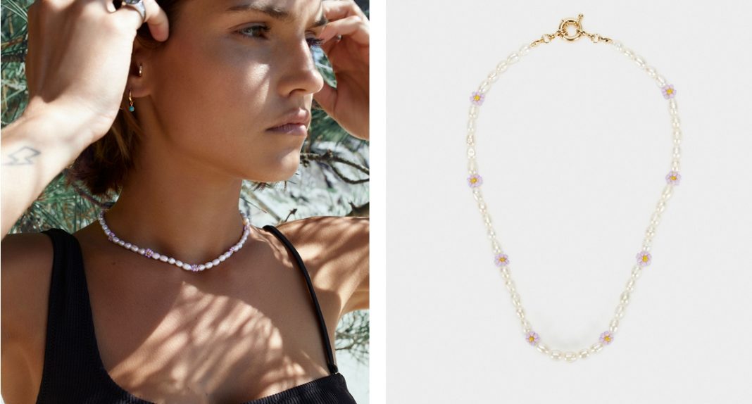 La siguiente opción de Parfois puede ser una alternativa si no te gusta la anterior. En este caso también es una pieza de bisutería muy fina que destacará en tu cuello. Es un collar corto con detalles de perlas y flores. Su precio es de 19,99€.