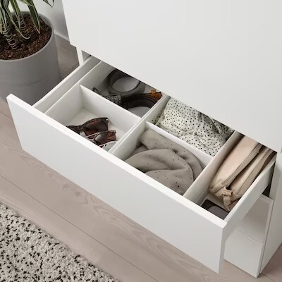 Siguiendo con la lista de los mejores productos de Ikea, es necesario mencionar la caja de la línea Stuk. En ella puedes guardar calcetines, el material de deporte y los jerséis doblados. Está formada a partir de tres compartimentos diferentes, los cuales mantendrán separados todos los artículos. Estas cajas van muy bien para tener las cosas ordenadas y aprovechar bien el espacio. Su precio es de tan solo 4 euros.