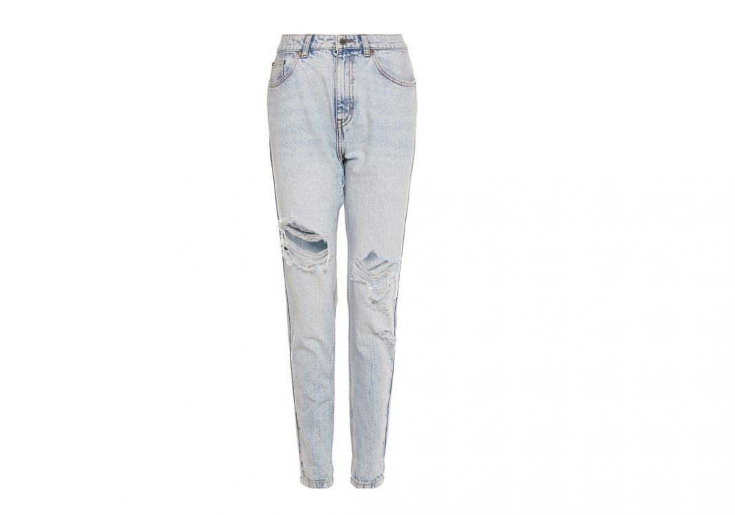 Se trata de un modelo de vaquero de talle alto, con detalles de desteñido y también con zonas rasgadas en la parte de las rodillas.