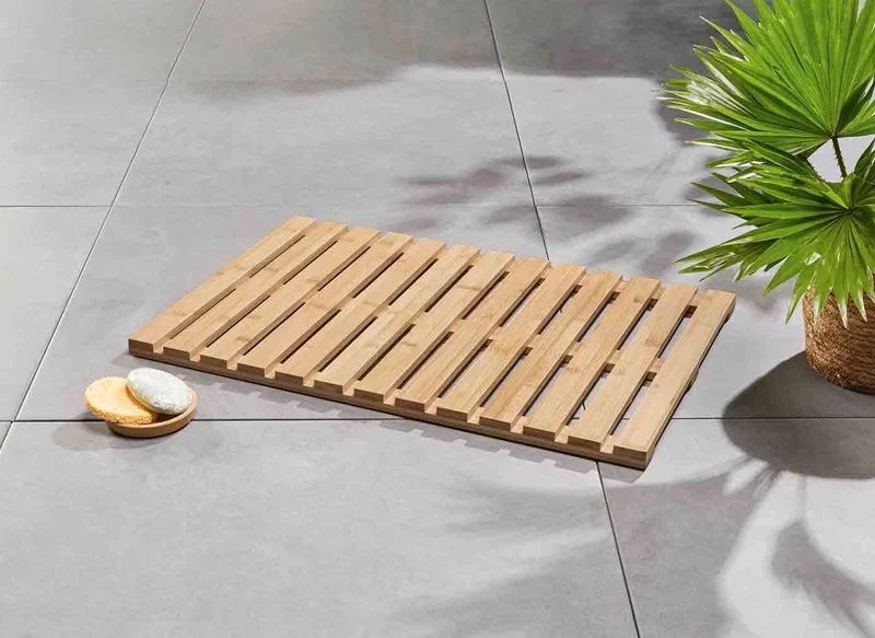 Seguimos con productos para el baño. Hay quienes apuestan por alfombras para su cuarto de baño, pero hay quienes prefieren optar por otros productos como esta estera de baño de bambú que se vende en Lidl por tan solo 12,99 euros.