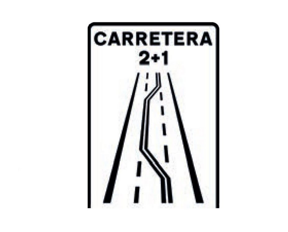 La señal de tráfico «Carretera 2+1» de la DGT señala el comienzo de una carretera 2+1, que consta de tres carriles y permite la circulación en ambos sentidos. El carril central se utiliza para adelantar y se reserva alternadamente para cada sentido, mejorando la seguridad en adelantamientos. Los conductores deben estar atentos a las señales y las marcas viales que indican cuándo pueden utilizar el carril central para adelantar y cuándo deben volver al carril de su sentido. Cumplir con estas indicaciones es esencial para prevenir colisiones en estas carreteras.