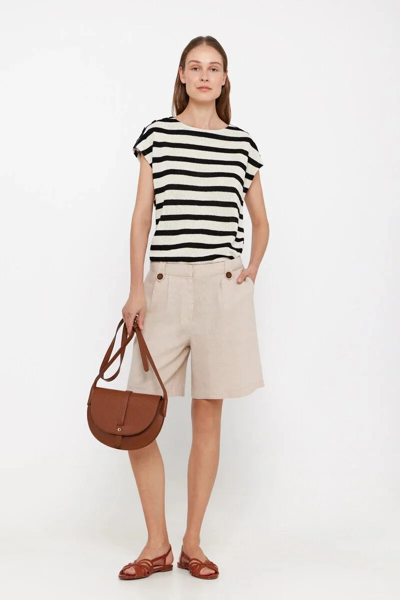 La versatilidad de estas bermudas permite una variedad de combinaciones. Disponibles en colores como beige y verde, puedes elegir el tono que mejor se adapte a tu estilo y preferencias. Ideales tanto para un look casual con una camiseta básica como para un estilo más elegante con una blusa ligera, estas bermudas son una opción versátil para múltiples ocasiones durante la temporada de calor.