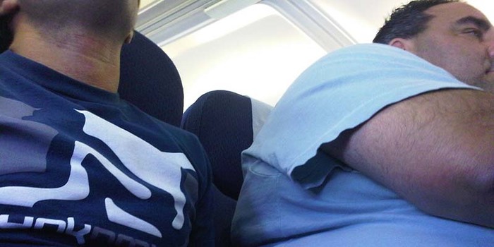 Otra opción es aprovecharte de la obesidad o la altura. Si estás gordo o eres demasiado alto puede ser otro punto a tu favor. Muchas veces no lo hacen por ti, si no por lograr que no molestes al vecino de al lado. Así que puede ser buen momento para echarse un poco más de la cuenta encima del vecino a ver si se queja.
