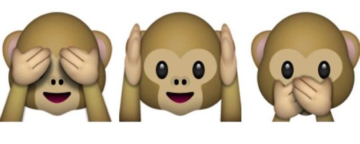 Los emojis de los tres monos tapando los ojos, orejas y boca, son los que ilustran el proverbio japonés: no ver el mal, no oír el mal, no hablar el mal. Lo clásico.