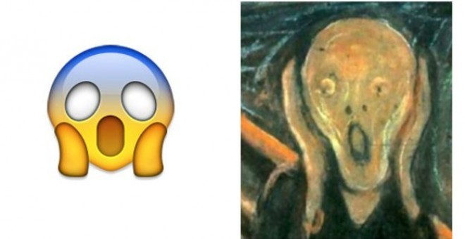 El emoticono de una persona gritando con expresión de horror y manos en las mejillas está claramente inspirado en el cuadro de Munch y expresa miedo, pánico pero también se utiliza en situaciones divertidas.