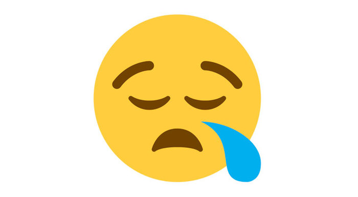 Este emoji parece expresar una cara de tristeza. Pero ese no es el mensaje original. En verdad el icono representa una cara de sueño, y la gota que sale de ella es una borbuja de muco o baba, según la Emojipedia.