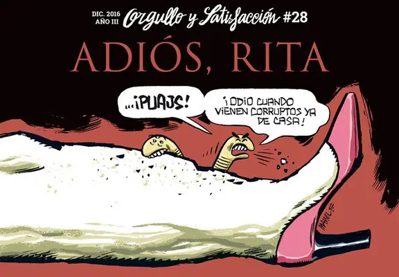 En la citada portada, bajo el título ‘Adios, Rita’, dos gusanos que intentan comerse lo que podría interpretarse como la pierna sepultada de la exalcaldesa de Valencia y senadora Rita Barberá, lamentan su mal sabor.