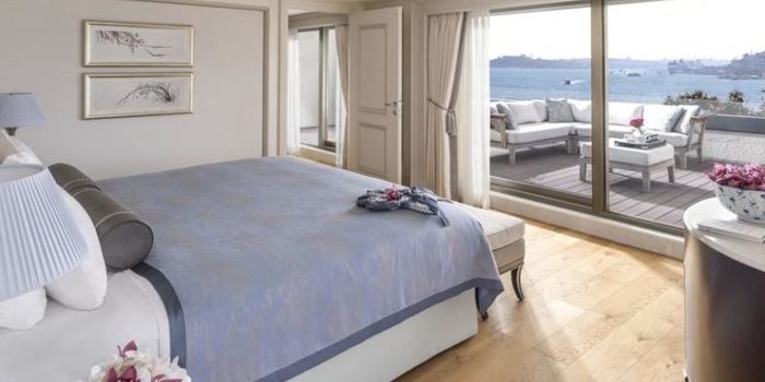La suite Shangri-La, del hotel Shangri-La Bosphorus en Estambul, Turquía, posee dos cuartos y vista para el Estrecho de Bósforo, que marca el límite de los continentes asiático y europeo en el país.