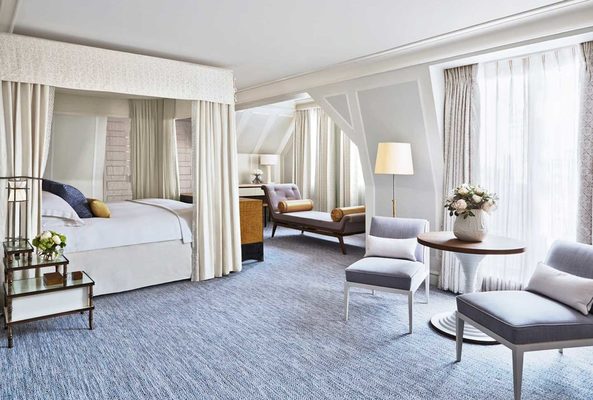 Quién quiera hospedarse por una noche en la suite The Connaught Hotel, en Londres, necesita desembolsar 24.600 dólares. La suite posee dos terrazas con bellísimos jardines y un mayordomo que está a la disposición de los huéspedes para organizar cenas particulares con menús afinados.