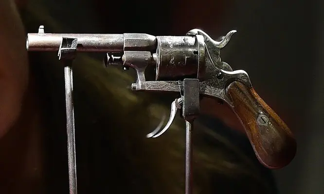 El arma del delito es un revólver de seis balas calibre 7 mm, con el número de serie 14096. Paul Verlaine lo compró en una armería en la mañana del 10 de julio de 1873, junto con una caja de 50 balas, probablemente bajo la influencia del alcohol. Esa misma tarde, exclamando «aquí tienes tu merecido, así aprenderás a largarte» pegó dos disparos a Rimbaud. Jamás se sabrá si su intención era la de matar, pero tan sólo logró rozarle la muñeca izquierda, una herida por la que pasó diez días hospitalizado. Verlaine, por su parte, fue condenado y pasó dos años en la cárcel.