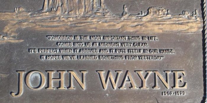 Y es que, la creencia popular habla de que la tumba de The Duke reza los siguiente: «Feo, fuerte y formal». La realidad es mucho más profunda y el mensaje real dicta así: «El mañana es lo más importante en la vida. Viene a nosotros a medianoche muy limpio. Es perfecto cuando llega y se pone en nuestras manos.»