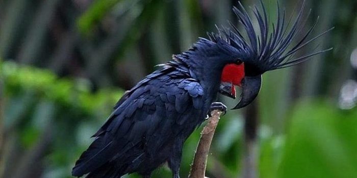 La cacatúa de palma es conocida por su color gris negro o ahumado y la mancha roja visible en su cabeza. Es el único miembro de la especie monotípica del pájaro conocida como Probosciger y familia asociada. Tiene entre 55 y 60 cm de altura y pesa entre 910 y 1.200 gramos.