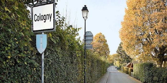 Muchas de las mansiones en esta calle en Cologny, cerca de Ginebra, tienen jardines, enormes piscinas y fachadas arquitectónicas diseñadas. Cinco propiedades en esta calle se vendieron por más de 13.1 millones de dólares entre 2008 y 2010, mientras que el precio récord para una casa en esta calle es de 36 milliones de dólares.