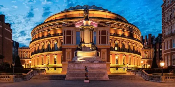 El Royal Albert Hall fue inaugurado el 29 de marzo de 1871, es uno de los teatros más emblemáticos del mundo y una de las construcciones más distintivas del Reino Unido. Fue construido para cumplir la visión del príncipe Alberto, consorte de la reina Victoria, de un «Salón Central» que fuera utilizado para promover las artes y las ciencias en South Kensington, rodeado de museos y centros de aprendizaje.1