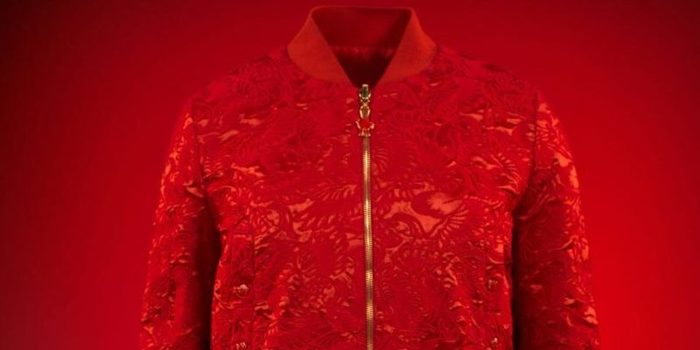 Teñida de rojo con adornos de oro, que se consideran los colores de la buena suerte, la felicidad y la fortuna, la opción para las mujeres (1.615 euros) ofrece una impresión de brocado, mientras que en la versión masculina (1.170 euros) el gallo aparece bordado en la espalda. La buena noticia para los que no les gusta lucir colores tan llamativos es que la chaqueta es reversible, siendo que el otro lado presenta el tradicional acolchado negro de una bomber.