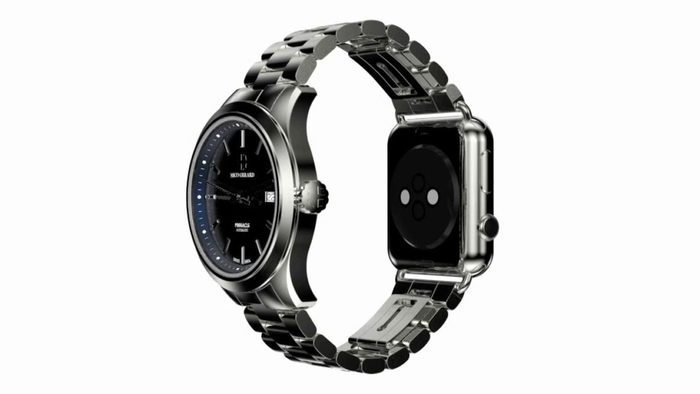 Originalmente, este reloj no es un smartwatch. Ahí es donde entra el reloj de Apple. Sí, otro reloj de Apple. Esta vez, está integrado en el reloj de Nico Gerard. Así que en lugar de tener sólo un reloj, tendrá dos en uno. Simplemente gira tu reloj tradicional Nico Gerard Skyview Pinnacle y tendrás un Apple Watch.