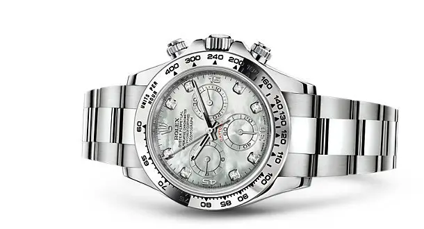 Las funciones de cronógrafo Daytona se activan mediante botones pulsadores que se «esconden» cuando no están siendo utilizados, como la corona, lo que garantiza la impermeabilidad a 100 metros. La presión para iniciar, detener o reiniciar el cronógrafo produce un «clic» claro, que se ha mejorado a través del uso de tecnología avanzada.
