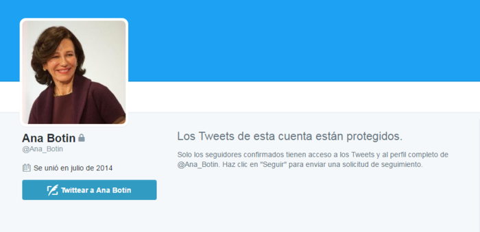 Sin embargo, al buscarlas, hemos encontrado que la de Ana Botín es privada, mientras que la del vicepresidente de la entidad azul, Vila Torres, existen varias sin verificar con poco contenido y actividad y menos seguidores aún.