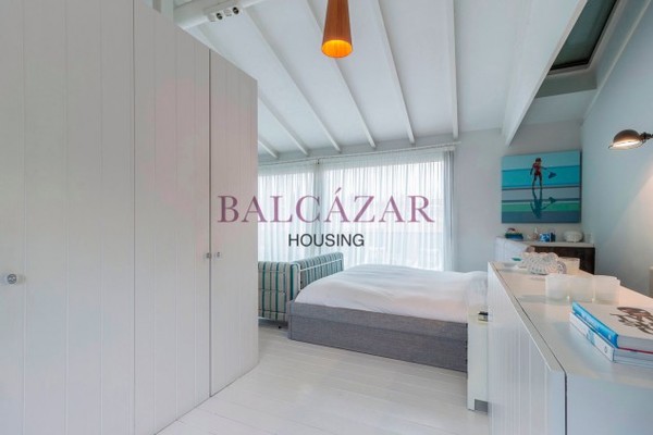 El dormitorio principal de la casa sigue la estética del resto de la vivienda. Tonos claros y optimistas -propios de la personalidad de Bimba-. Se trata de un suite ubicada en la última planta de la casa. Cuenta con una pequeña terraza, amplios ventanales y un vestidor en el que guardar los vestidos de la modelo.