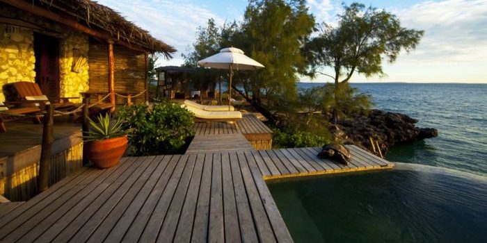 Las nueve villas de planta abierta están elegantemente revestidas de madera, algodón, guijarros y ratán. Algunos tienen duchas al aire libre y salas de playa (pabellones). La isla tiene cuatro playas. El menú favorece el pescado y la producción local, y los vinos provienen de cinco propietarios británicos y del propio castillo en el Valle del Loira, en Francia.