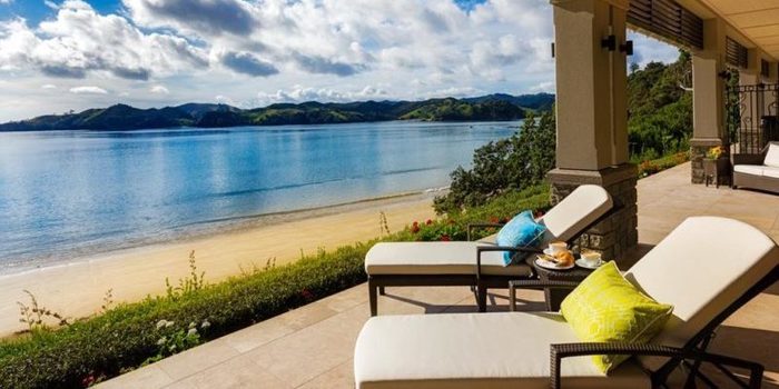 Estrictamente hablando, no está en una isla privada, pero esta nueva casa de la Isla Norte es tan remota que casi lo podría ser. Los huéspedes llegan y salen en helicóptero, y las incursiones fuera de la propiedad de 800 acres implican kayaks o barcos. Albergando no más de cinco parejas a la vez, la finca tiene una casa principal y dos villas frente a la playa ubicadas en casi dos kilómetros de costa.