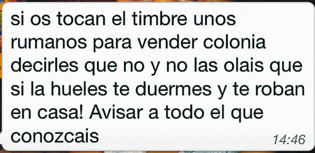 ¿De qué se trata la supuesta estafa? Unos vendedores de colonias acuden a la puerta de tu casa, te dan a probar el producto, pero no se trata de un perfume verdadero, sino de una sustancia química que te haría perder el conocimiento. Específicamente, éter.