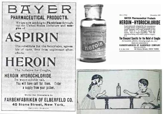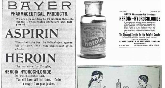 Y para muestra un botón, Bayer, el famoso laboratorio alemán, lanzó al mercado Heroin, un jarabe para paliar la tos de los niños y que contenía grandes cantidades de esta droga destructiva. Una pócima que se lanzó al mercado en 1898.
