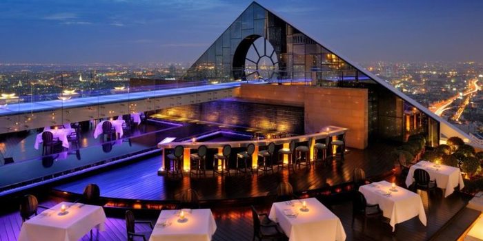 Probablemente el bar más increíble en una planta superior del mundo sea Sirocco, que se encuentra en la parte superior de la bóveda de la Torre del Estado, en el piso 64 del edificio. Con un encantador ambiente mediterráneo, este increíble bar ofrece una vista de 360 grados de Bangkok que podría literalmente matarte de asombro.