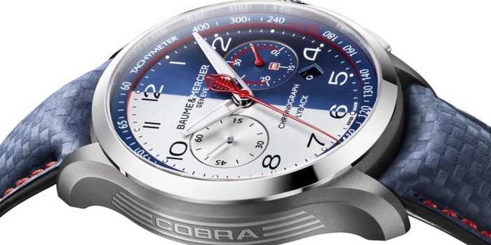 Tradición de todos los años, la asociación entre Baume & Mercier y Carroll Shelby se amplió en 2017 con la presentación de un modelo de edición limitada de sólo 196 piezas. El reloj, un cronógrafo flyback, tiene su cara rota dividade por la mitad, con los colores de del coupé Shelby Cobra Daytona reproducidos con precisión.