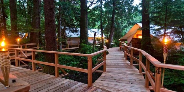 Clayoquot Wilderness Resort en Vancouver, Canadá es la experiencia de camping de lujo más cara del mundo. Una sola noche cuesta 3.900 dólares. El campamento sólo se puede acceder por un paseo en barco de treinta minutos o a través de una ruta escénica. No hay televisores o teléfonos en el complejo. El objetivo es que los huéspedes del campamento puedan escapar del ajetreo y el bullicio de la vida cotidiana y realmente entretenerse al aire libre.