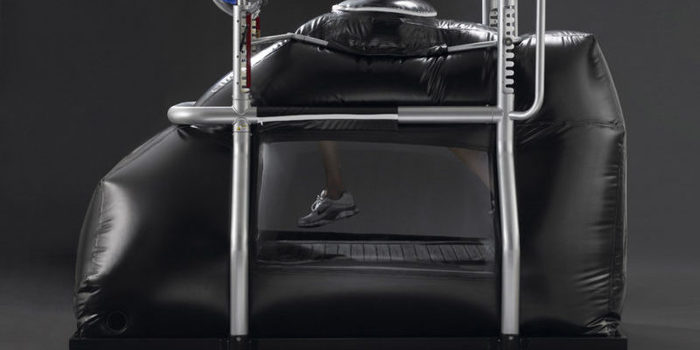 Diseñado para que los corredores se rehabiliten después de una lesión o después de una cirugía, el AlterG es «el único dispositivo de reducción de peso que utiliza la presión del aire para crear una fuerza de elevación precisa y suave», según el sitio web de la compañía.