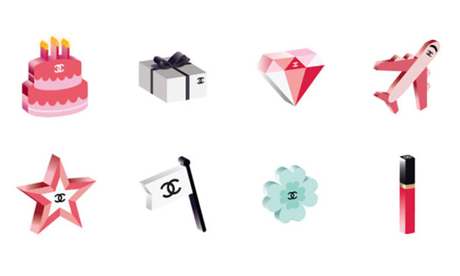 ¿La solución? Emoticonos de Chanel. Sí señoras y señores, Chanel ha sacado su propia línea de pegatinas digitales. Ahora cuando estés discutiendo con tu novio o novia sobre qué película ver esa noche y vas perdiendo claramente, puedes enviarle una bandera blanca adornada con el logotipo famoso de Chanel en él en vez de apenas decir «me doy por vencido.» En lugar de enviar el emoji de lápiz de labios que se encuentra en el teclado de Apple, puedes comunicar tu aspecto del día con una serie de barras de labios Chanel. ¿Que podría ser mejor?