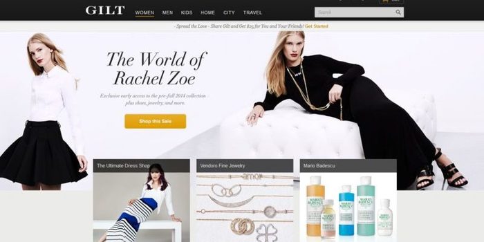 Gilt fue la pionera en el mundo de los sitios de venta privada y el sitio web sigue siendo muy popular. Sus productos estrella se venden en un tiempo récord, y ofrecen algunas características interesantes, como una lista de espera, que funciona. Además, con un sistema de compras bastante confiable.