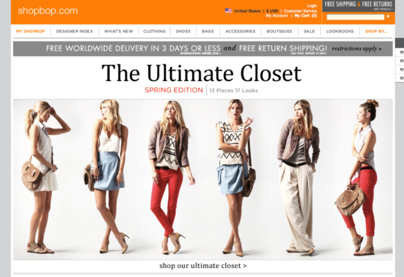 Para una satisfacción única, este sitio es inmejorable. Con los hallazgos de moda femenina como Marc Jacobs, DVF, Botkier y muchos más, Shopbop se adapta a las tendencias, así como a los seguidores de las tendencias.