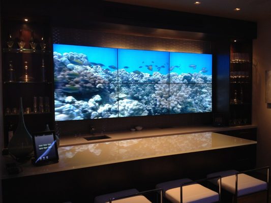 Esta pared particular consta de 9 pantallas MX46HDS individuales. Cada pantalla es una pantalla LCD de 46 «con un ancho de bisel de 3,7 mm.