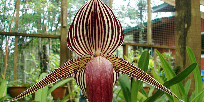 La orquídea Oro de Kinabalu se vende a un precio muy alto debido a su rareza y belleza. Con sus hermosos, largos y verdes pétalos con manchas rojas, esta joya se encuentra sólo en el Parque Nacional Kinabalu en Malasia.