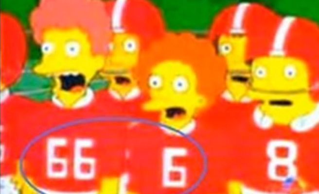En esta ocasión, podemos ver reflejado el 666, que es el número del diablo, en las camisetas de los dos niños. En este capítulo es el propio Ned Flanders el que le da esos números a sus hijos, ya que es el entrenador del equipo de fútbol americano. ¿Qué nos querrán decir con esto? ¿Que no es oro todo lo que reluce?