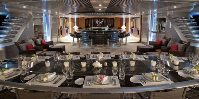 Ahora, es propiedad de Elena Ambrosiadou. Puede llevar hasta doce invitados. Y para satisfacer las necesidades de los huéspedes están los 22 miembros de tripulación. El exterior fue diseñado por Perini Navi y Gerard Dijksrta, y el interior fue por Ken Freivokh. Para que coincida con la sofisticada tecnología de este barco de alto precio, Freivokh combinó el tema chic de alta tecnología con el industrial en su diseño de interiores.