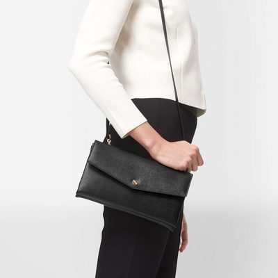Viene con una correa de cadena de cuero desmontable y ajustable que se puede usar cruzada, para a diario, o convertirse en un bolso de cóctel para durante la noche. Ideal y bastante asequible.