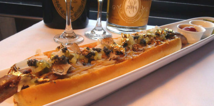Hoy en día, el perrito caliente es muy popular porque es rápido, caliente, delicioso y barato. Hasta que un restaurante en la quinta avenida, en Nueva York,lanzó un perrito caliente de 2.300 dólares. Este perrito caliente es casi tan largo como un bate de béisbol. La carne está hecha de wagyu secado durante 60 días y enriquecido con trufa negra. Y el pan es bollo brioche tostado, cepillado con mantequilla de trufa blanca y untado con Ketchup orgánico, que está sazonado con azafrán y Mustarde de Charroux importados de Francia.