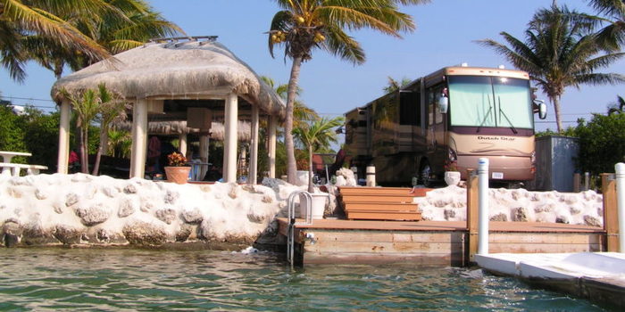 Siguiente en nuestra lista es el Blue Water Key RV Resort, ubicado en Cayos de Florida. Con cabañas privadas, los aparcamientos frente al mar cuentan con muelles privados para nadar y pasear en barco.