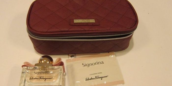 Cada neceser contiene, entre otros productos, una toallita limpiadora, un bálsamo labial, una crema para las manos y una minitoalla (de 30 mililitros) de la fragancia Acqua Essenziale Blu (para ellos) y de Signorina Eleganza (para ellas). Antes del despegue, los pasajeros también reciben un elegante pijama, unos calcetines y unas zapatillas a medida.